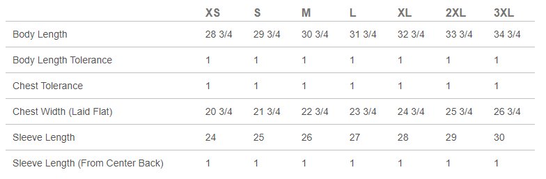 Note*: W (Width), L (Length), SL (Sleeve length)